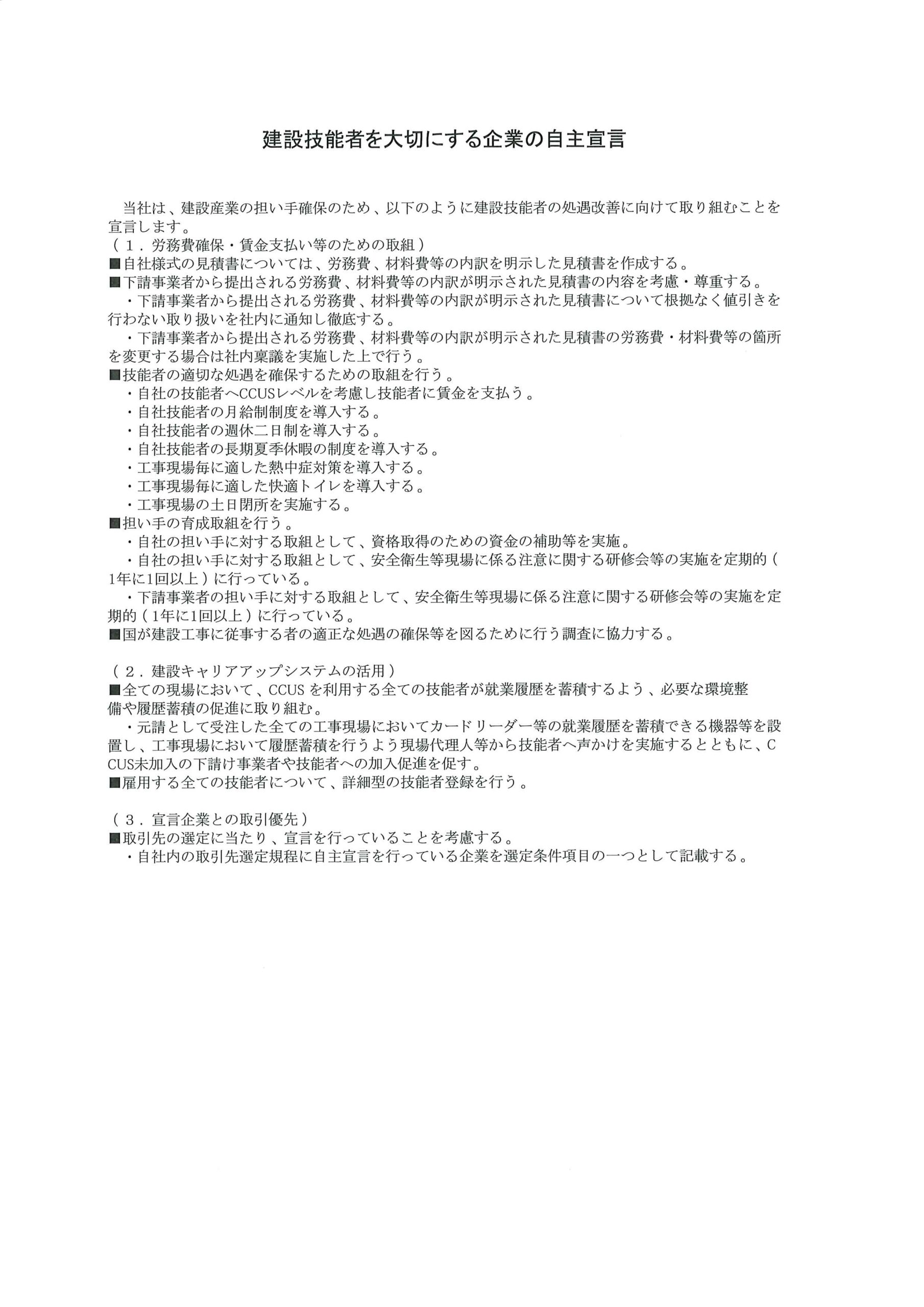 建設技能者を大切にする企業の自主宣言について